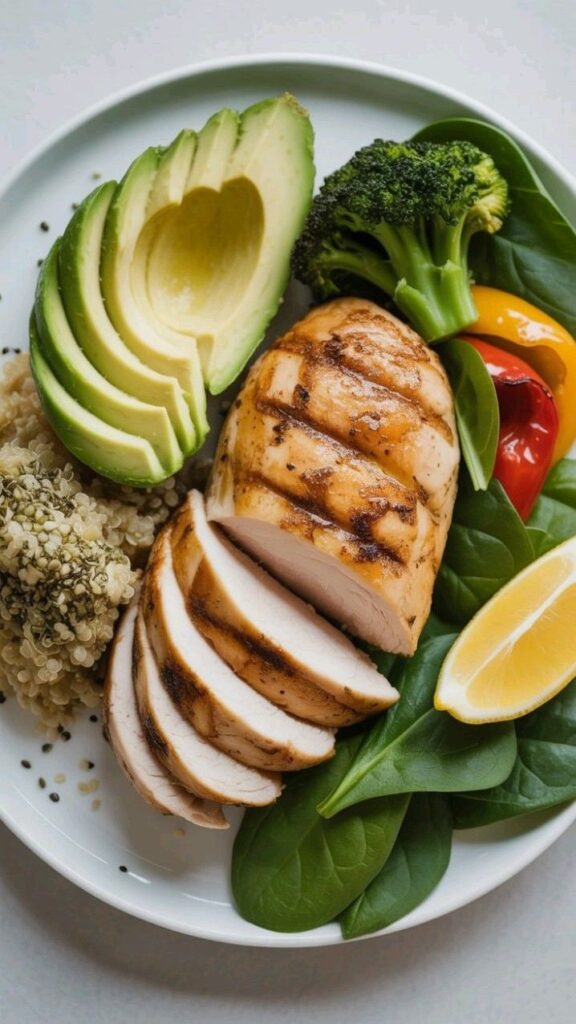 Delicious keto bowls with grilled chicken, shrimp, avocado, and fresh vegetables. Perfect for low-carb diets, intermittent fasting, and weight loss meal prep. Pin these easy keto recipes for your weekly plan!