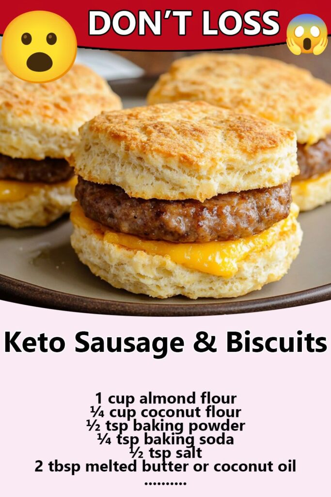 Share Facebook Twitter LinkedIn Pinterest Email A low-carb twist on a Southern classic โ these keto sausage and biscuits are soft, buttery, and filled with savory breakfast flavor for a hearty, high-fat start to your day!