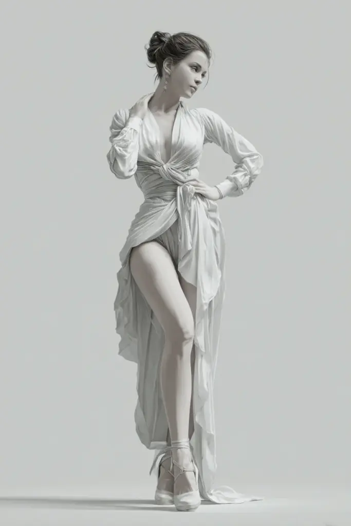 Draped in White, Poised in Motion