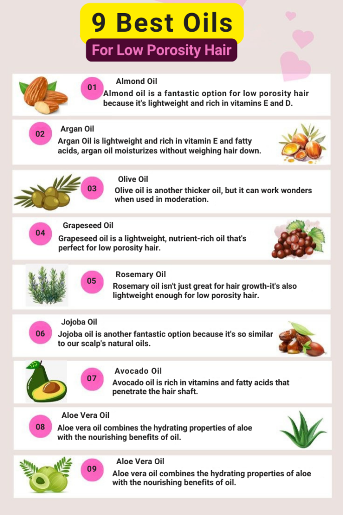 Find your perfect oil! From Almond to Rosemary, discover the top 9 lightweight oils ideal for low porosity hair.