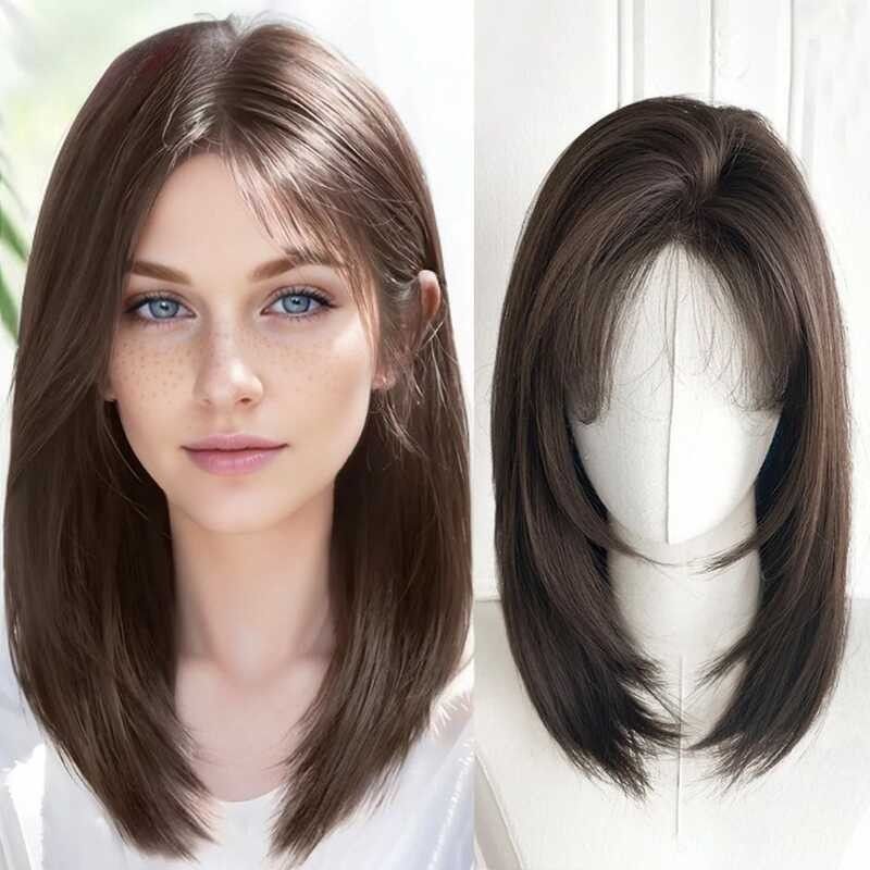 Share Facebook Twitter LinkedIn Pinterest Email Shoulder Layered Synthetic Wig for Women Daily Use 16inch Heat Resistant BOB Wig with Lace Front Brown Black Lolita Cosplay Wigs