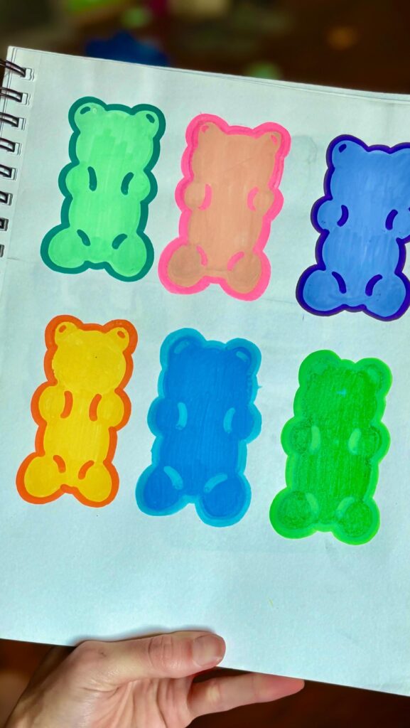 Home » Acrylic marker drawing ideas, gummy bear tutorial, doodle journal