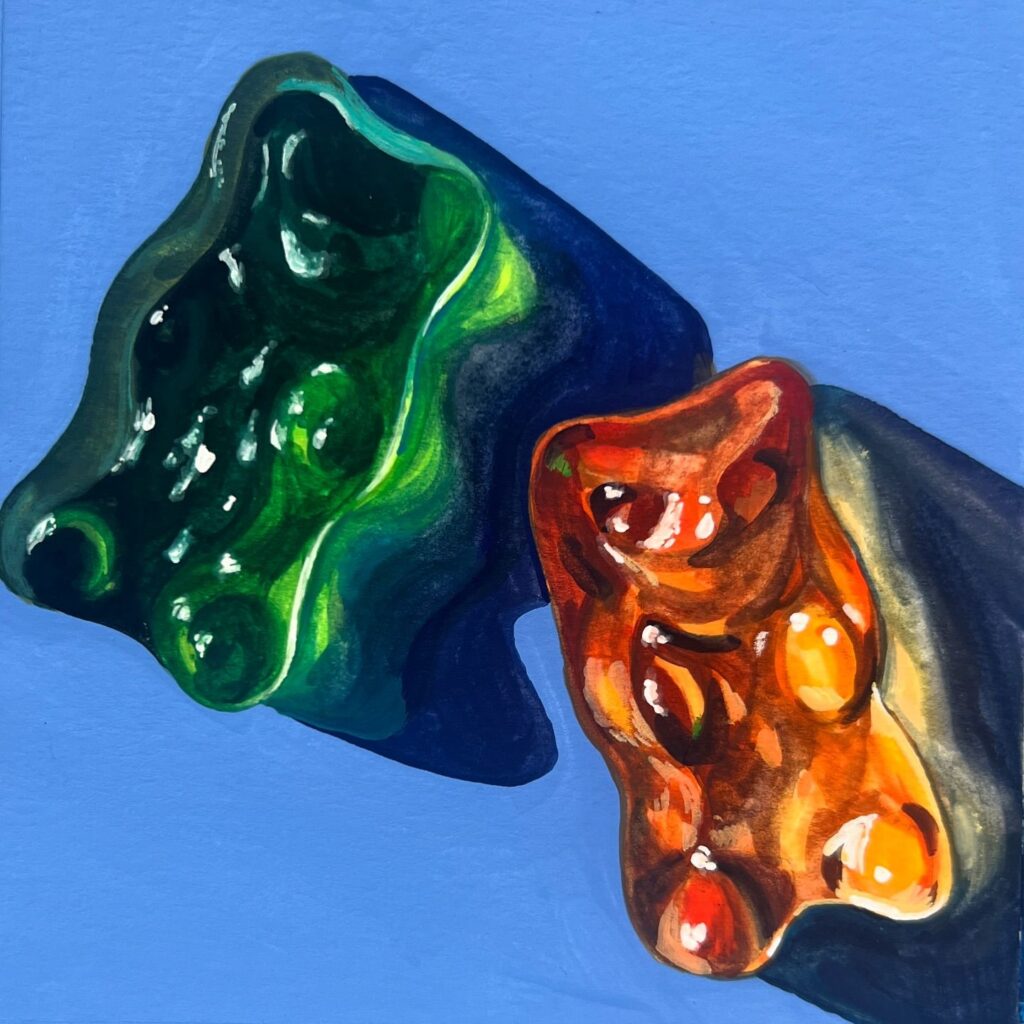 How many of are 80s kids who watched the Gummy Bears cartoon? Daily Painting Just posted in my online store (KateBirchArt.com) Link in bio! Gouache on paper Paper size 6×6 inches with small white border $120 *** please note for international orders a customs tax may be required upon delivery *** #gouachepainting #stilllifepainting #artistsoninstagram #painteveryday #colorfulart #gouache #dailypainting #dailyart #utahartist #makearteveryday #gouacheartist #art #painting #illustration #i…