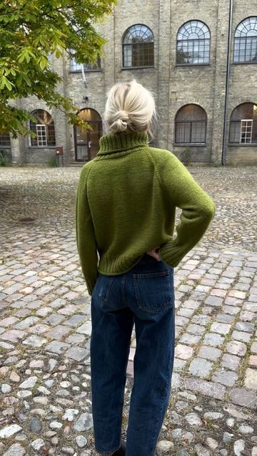 PetiteKnit // Mette on Instagram: “Der er masser af fine farver dette efterår, og en af dem er denne grønne farve 🍏 Jeg har strikket min Amy Sweater oppefra og ned med raglanudtagninger og med dobbeltrib i kanterne, der afsluttes af en glatstrikket rullekant (med andre ord: ingen italiensk aflukning, bare en helt almindelig aflukning i glatstrik) 🫶🏻 Opskriften findes i størrelser fra XXS til 5XL på www.petiteknit.com 🍂 ______________________________________________ #knit #knitting #knitwear #strik #strikk #PetiteKnit #amysweater”