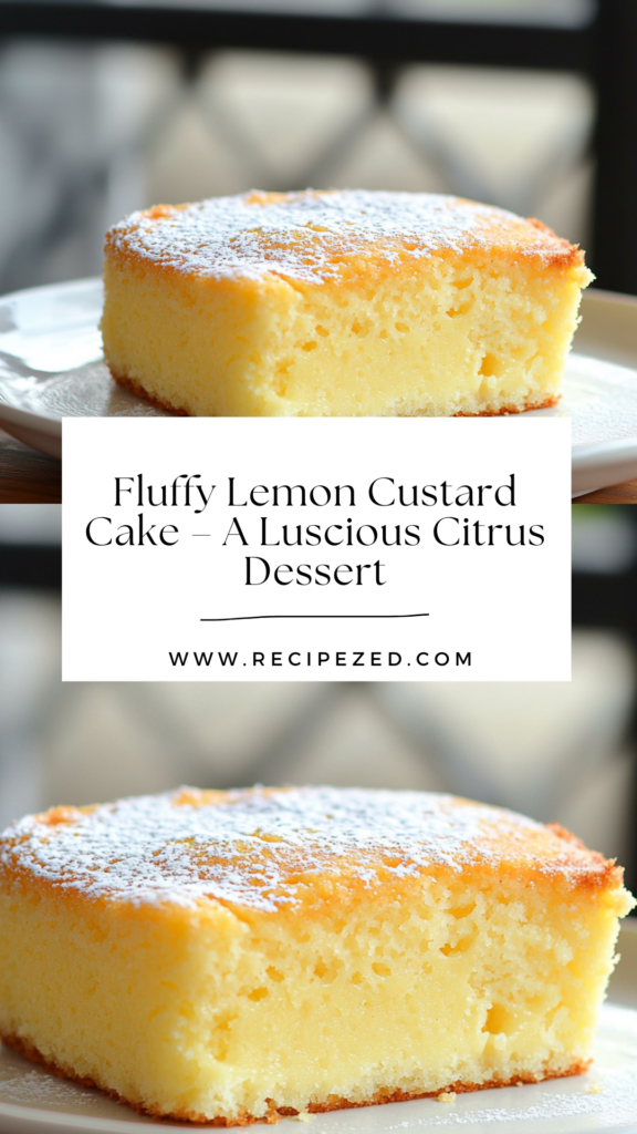 With its airy texture and tangy lemon flavor, this lemon custard cake is one of the top dinner party cake ideas for spring and summer entertaining. #DinnerPartyCakeIdeas #LemonCustardCakeRecipe #EasyDessertsForParty #LemonCurdDessertIdeas