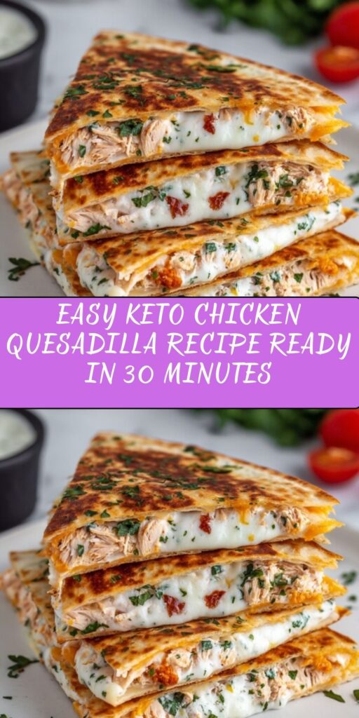 Looking for a quick and tasty dinner idea? This keto chicken quesadilla combines flavorful seasoned chicken, melty cheese, and sautéed peppers in low-carb tortillas. Ready in just 30 minutes, it’s perfect for busy weeknights or meal prep. Enjoy a simple, satisfying dinner that’s low in carbs but big on flavor. Save this easy recipe for your next cozy night in! #KetoDinner #ChickenQuesadilla #LowCarbRecipes #EasyDinners #QuickMeals
