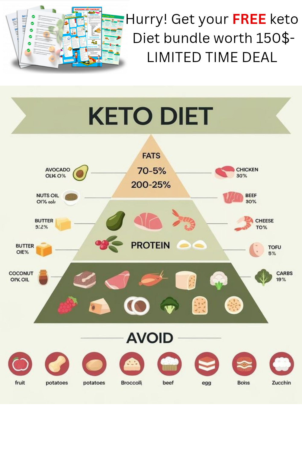 Dive into the Keto lifestyle with our FREE Keto Diet Bundle worth $150! Learn the perfect balance of fats, proteins, and carbs to achieve your health goals. Discover what to eat and avoid for optimal results. Limited time offerβgrab your bundle now! #KetoDiet #HealthyEating #FreeKetoBundle #LowCarb #HighFat #WeightLoss #KetogenicLifestyle