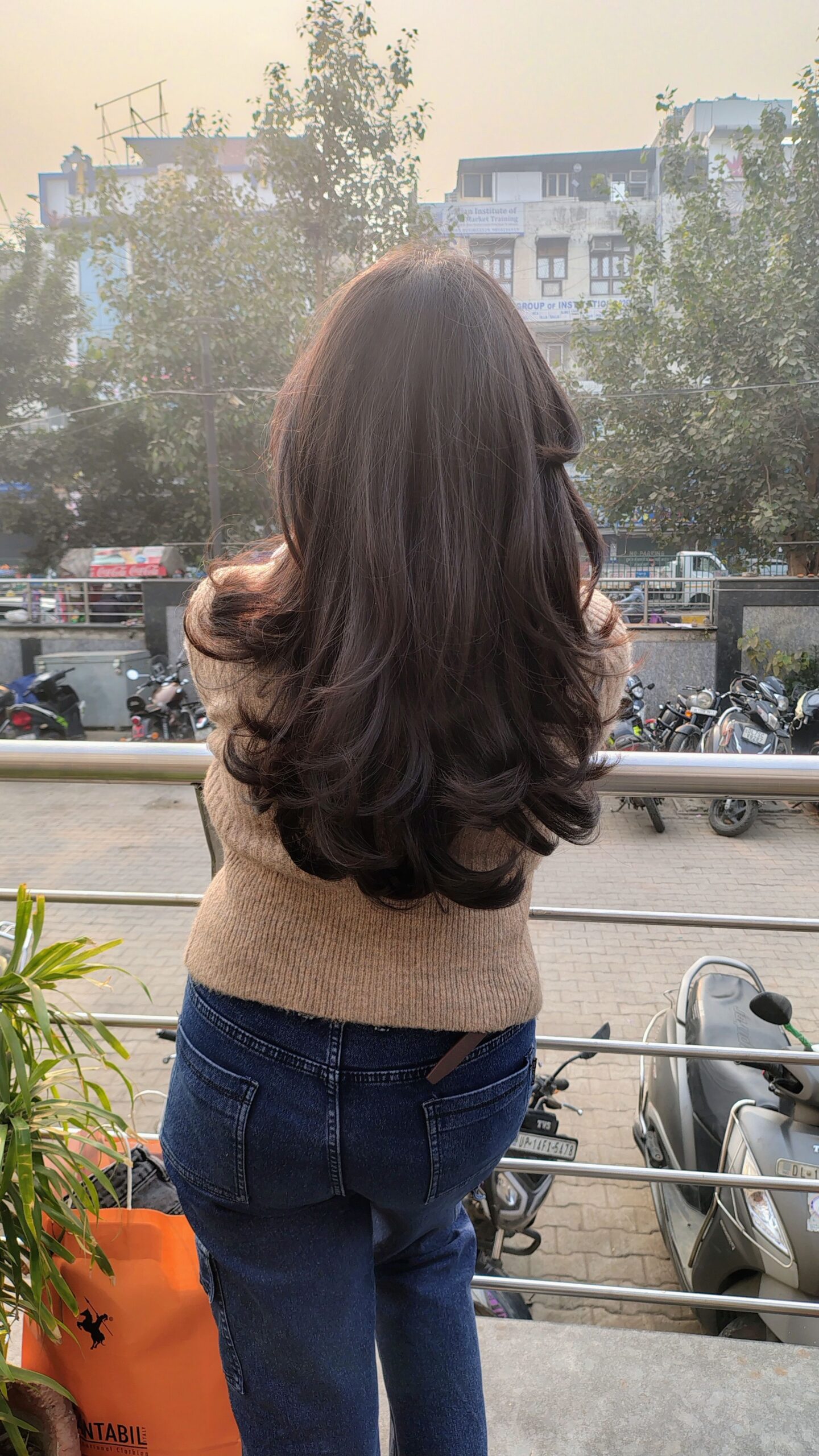 Share Facebook Twitter LinkedIn Pinterest Email Curtain bangs haircut from front and layers at the back