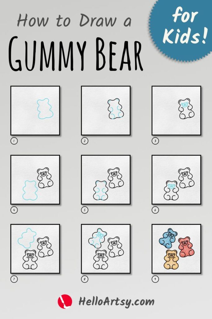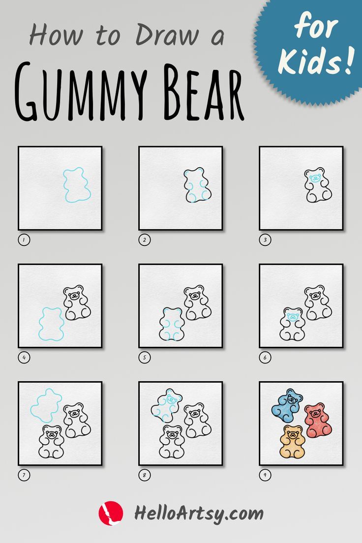 Share Facebook Twitter LinkedIn Pinterest Email Draw gummy bear easy! | how to draw a gummy bear in 9 simple steps. | Follow along with each illustration to learn how to create a how to draw a gummy bear. Ideal for kids who desire to learn how to draw!