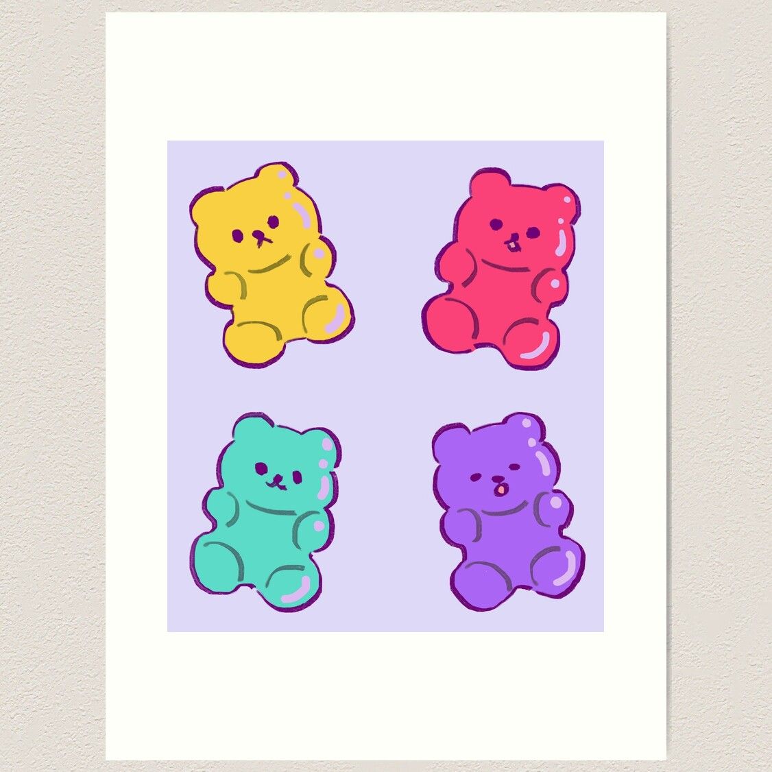 Share Facebook Twitter LinkedIn Pinterest Email Lightly textured 100% cotton paper. Gallery quality vibrant prints with white border for easy framing. Multiple standard sizes offered. Additional sizes are available. gummy bears