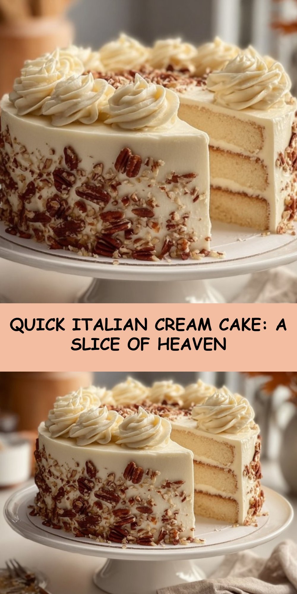 Bring joy to your gatherings with this Quick Italian Cream Cake: a delightful treat that melts in your mouth! Perfect for any occasion, this simple recipe combines rich ingredients like coconut and pecans, creating a memorable dessert everyone will love. Ready to impress your family and friends? Try this cake today! #ItalianCreamCake #EasyDesserts #BakingJoy