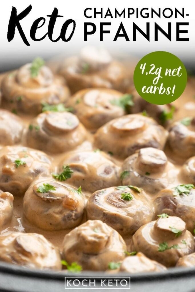 Diese Keto Champignonpfanne mit nur 4,2g verwertbaren Kohlenhydraten pro Portion schmeckt herrlich deftig wie die vom Weihnachtsmarkt (wenn nicht sogar ein bisschen besser)! Außerdem ist sie super schnell gezaubert und passt toll als Keto Beilage zu diversen Fleischgerichten, zu Eiern und sie schmeckt auch einfach so!