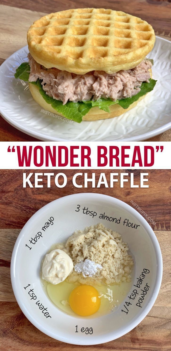 Keto Wonder Bread Chaffle Recipe (Soft, Easy & Delish!) This easy keto waffle recipe is made with simple ingredients: almond flour, mayo, egg and baking powder. An absolutely amazing mini waffle maker recipe that makes for excellent low carb sandwich bread! – Keto Bread Chaffle #easyketo #ketobread #chaffles