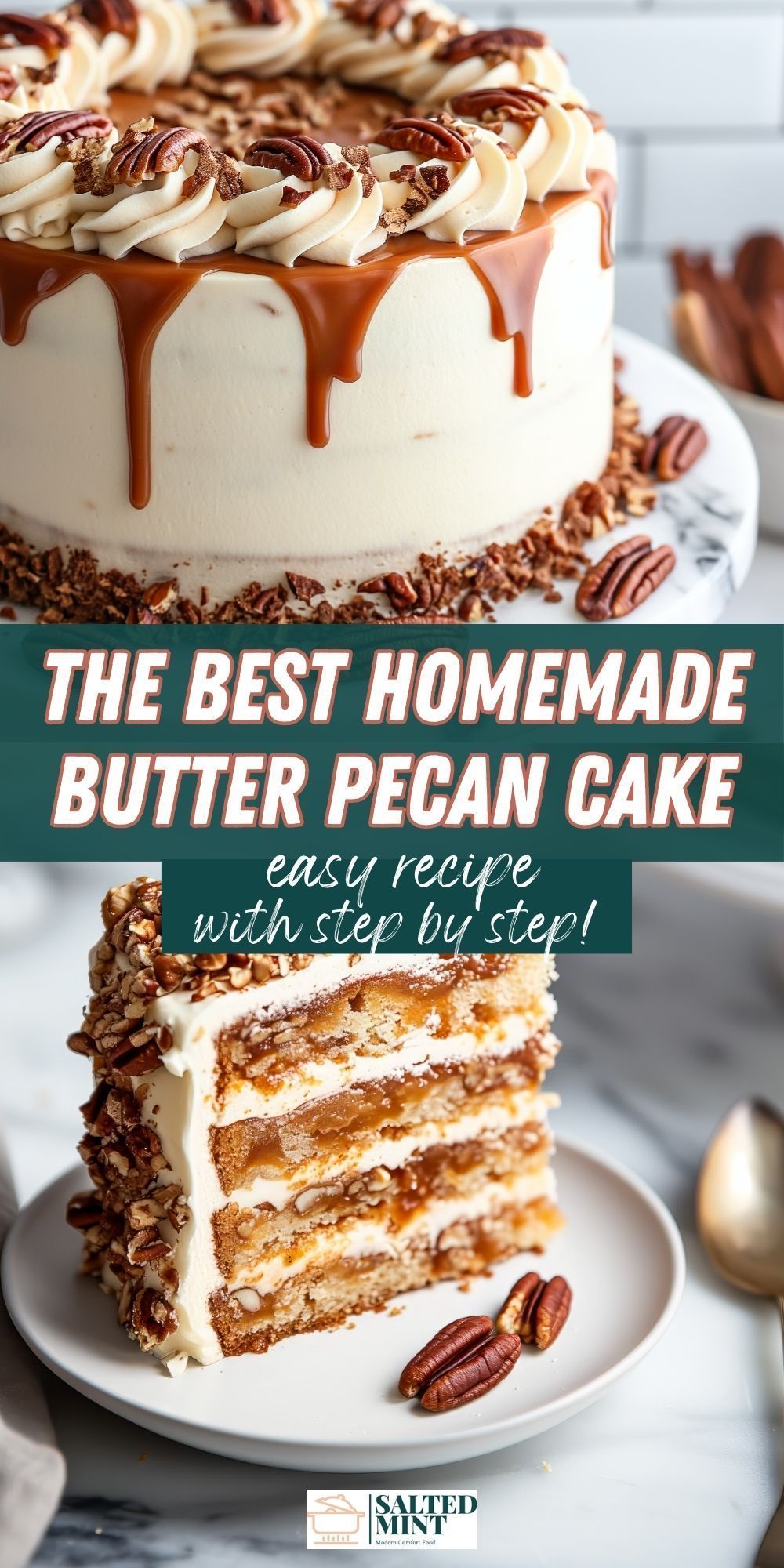 Share Facebook Twitter LinkedIn Pinterest Email Moist Butter Pecan Cake with creamy frosting. Ideal for Thanksgiving baking and Southern cake recipes. This easy layer cake is made from scratch with chopped pecans, light and fluffy.