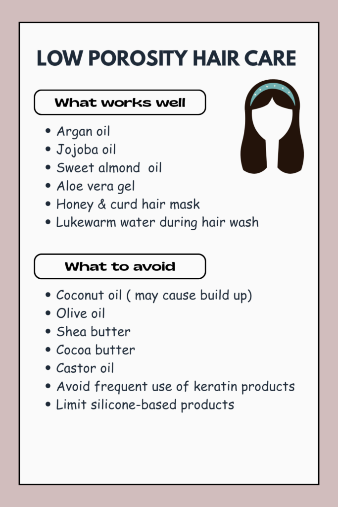 Low porosity hair often struggles with buildup and dryness. This guide shows what works well, which oils and products to limit, and how to care for low porosity hair without weighing it down. Save for your hair care routine.