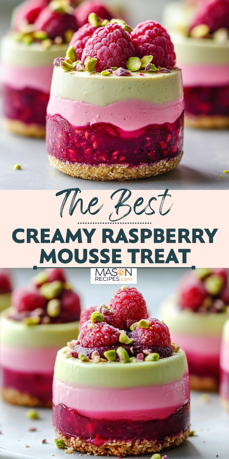 Indulge in these elegant Raspberry Pistachio Mousse Cakes, featuring a crunchy pistachio crust and a silky raspberry mousse. This easy, no-fail recipe is perfect for special occasions or a sweet treat at home! ๐Ÿฐโœจ