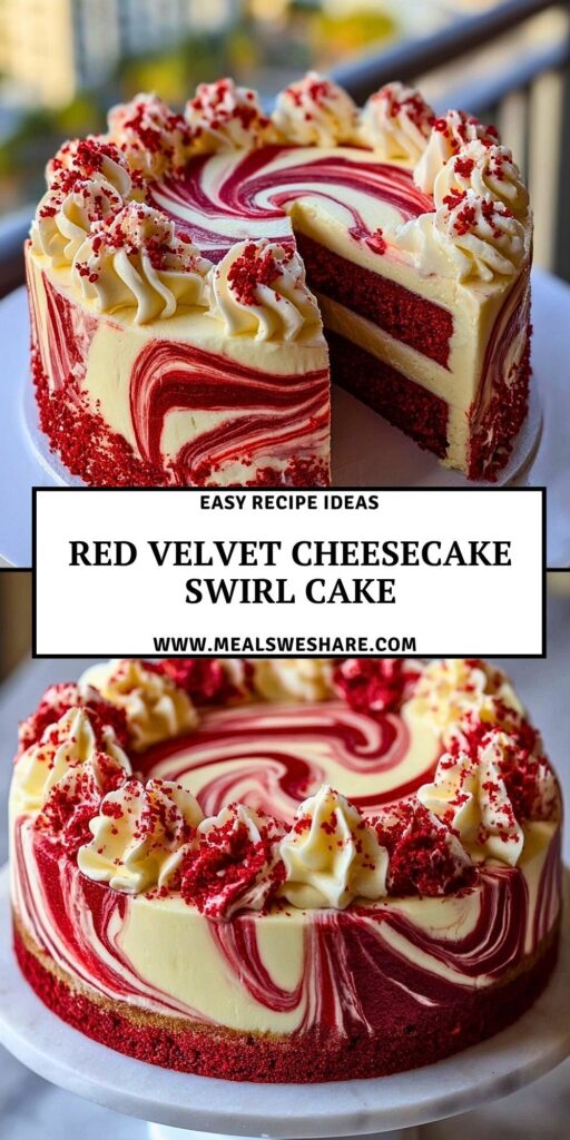 This Red Velvet Cheesecake Swirl Cake is a dreamy dessert that combines the elegance of red velvet with the richness of a cheesecake swirl. Perfect for celebrations, special dinners, or when you need a show-stopping sweet, it features moist layers, a tangy cream cheese marbled swirl, and a creamy frosting. A perfect option for easy dessert recipes, cake ideas, and holiday baking. Whether you need a birthday cake, a Valentine’s Day treat, or are just craving something indulgent, this is the perfect bake.