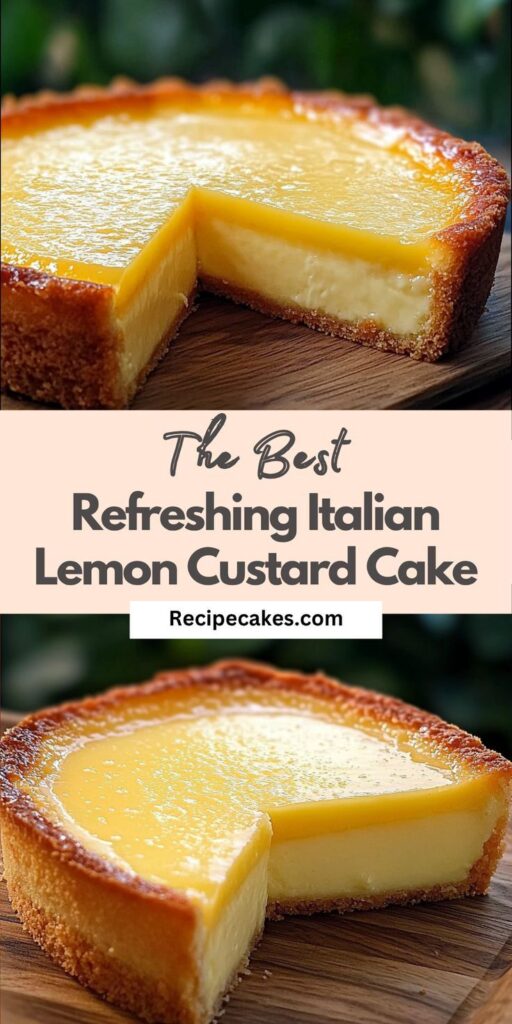 Discover how to make this Refreshing Italian Lemon Custard Cake that combines a luscious custard base with a tangy lemon twist. A family favorite, this cake is easy to prepare and perfect for spring and summer celebrations. Serve it chilled for a refreshing dessert that everyone will love!