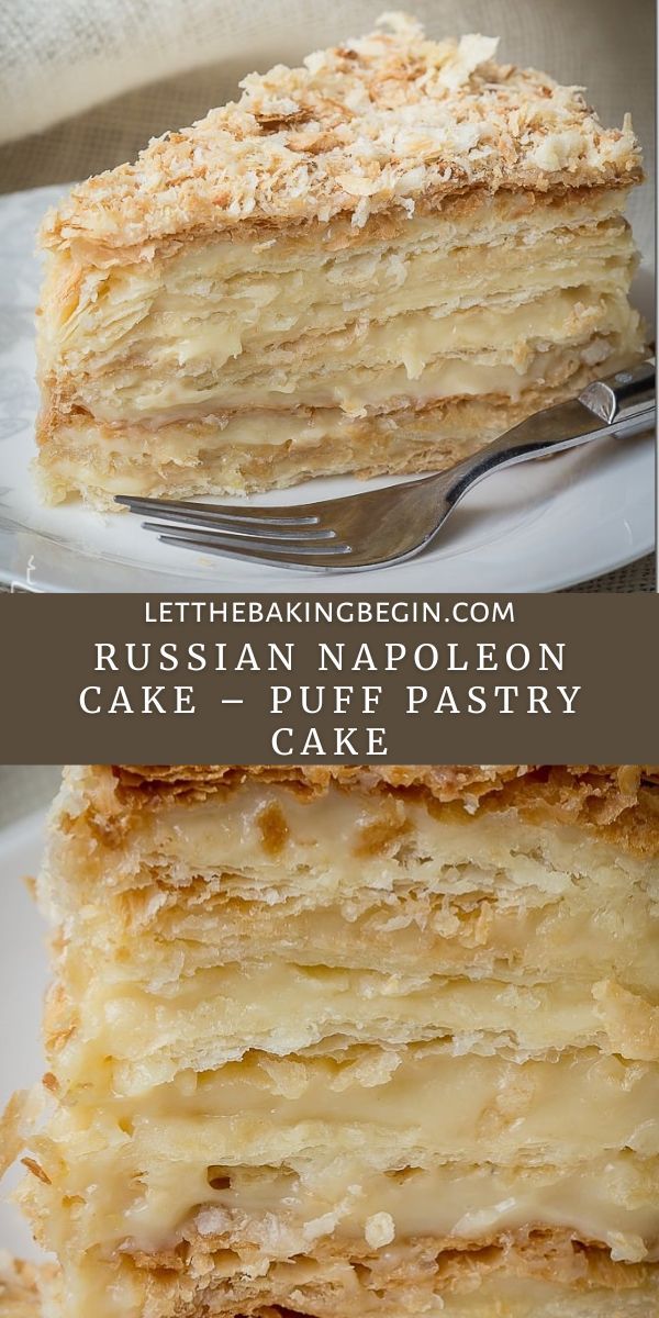 Share Facebook Twitter LinkedIn Pinterest Email Russian Napoleon Cake is the ultimate Napoleon Cake and a cousin of the traditional Napoleon Recipe. It is made of crispy puff pastry layers sandwiched with creamy buttery custard.