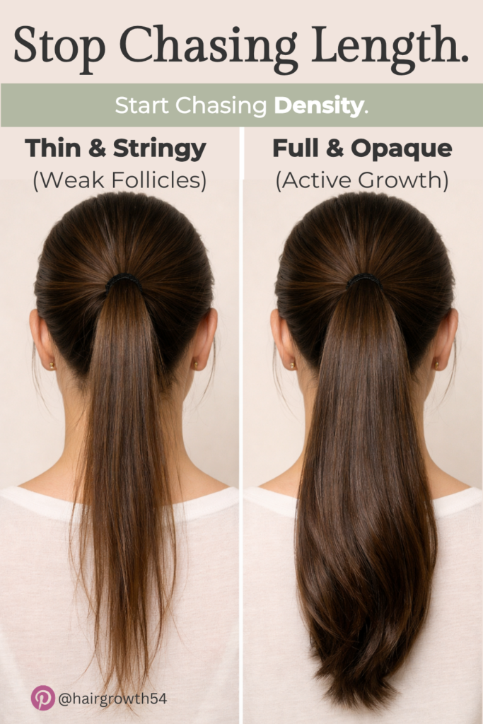 We often obsess over how long our hair is, ignoring how thin it has become. But the truth is: 20 inches of stringy, see-through hair looks unhealthy. 20 inches of dense, thick hair looks luxurious. The difference isn’t extensions; it’s follicle activation. When you focus on scalp health, you wake up dormant follicles, increasing the actual number of strands growing on your head. Want to turn your “rat tail” into a thick ponytail? Our “Scalp First Method” guide includes the “Density Protocol” to maximize your natural volume. Link in bio. #hairdensity #thinninghair #hairtransformation #hairgrowth #volumizinhair #scalpcare #healthyhair