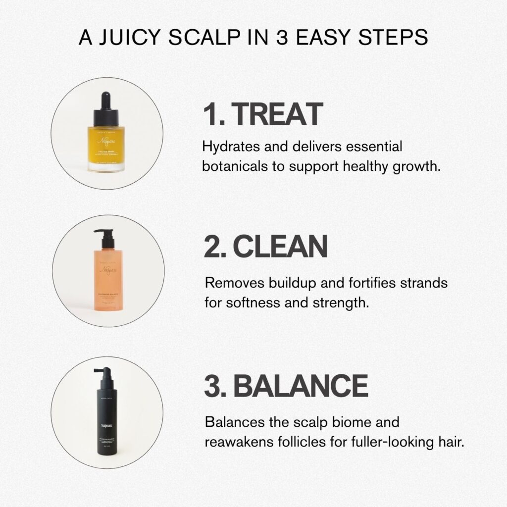 Healthy hair begins with a healthy scalp. Over time, the scalp ages — often prematurely leaving follicles weaker and growth slower. The Ritual is a simple, three-step system designed to keep the “soil” (the scalp) alive, nourished, and in balance, so hair can truly thrive. Together, these three steps form a ritual that’s rooted in tradition and backed by science to nurture scalp health, slow premature aging, and create the foundation for stronger, healthier hair.