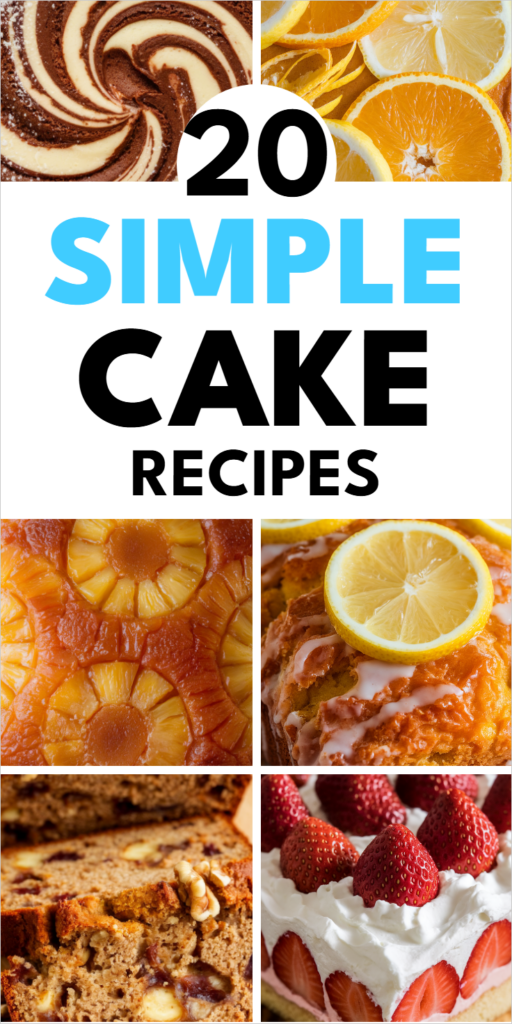 Simple Cake Recipes are the perfect easy dessert for beginners and busy bakers alike! These quick cake recipes require basic ingredients and simple steps, making them ideal for weeknight desserts or last-minute treats. Whether you’re looking for classic vanilla, chocolate, or fruit-flavored cakes, these no-fuss recipes deliver delicious results every time. Perfect for family dinners, potlucks, or whenever you need an easy dessert recipe that tastes homemade without the stress.