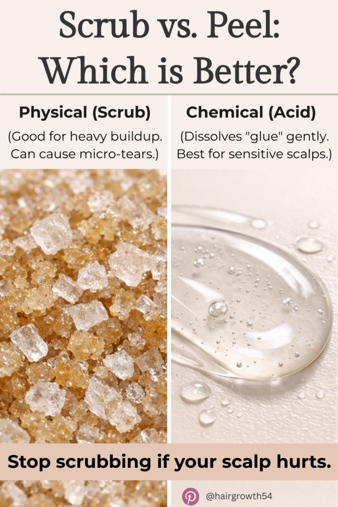 Do you love the feeling of a scrub, or are you actually hurting your scalp? **Physical Exfoliation (Salt/Sugar):** Great for lifting heavy, waxy buildup manually. But be careful—if used too aggressively, the sharp granules can cause “micro-tears” and irritation. **Chemical Exfoliation (Glycolic/Salicylic Acid):** Works by dissolving the bonds holding dead skin cells together. It’s gentle, uniform, and requires zero scrubbing. Which one does YOUR scalp need? Using the wrong one can lead to more oil or more dryness. Our “Scalp First Method” guide includes a “Sensitivity Quiz” to help you pick your perfect match. Link in bio. #scalpexfoliation #haircare #scalpcare #chemicalexfoliant #physicalexfoliant #hairscience #healthyhair