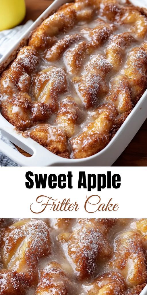 Delight in the warm, cozy flavors of Sweet Apple Fritter Cake, a tender, moist cake loaded with chunks of apple and spiced with cinnamon 🍎✨. This dessert tastes just like a classic apple fritter in a cake form, making it perfect for breakfast, brunch, or dessert. Topped with a sweet glaze and baked to golden perfection, each bite delivers a delightful balance of soft cake, juicy apple, and sweet spice. Quick to make and ideal for family gatherings or cozy mornings, this cake brings comfort and flavor to your table. Save this recipe for a classic, crowd-pleasing treat that’s perfect for apple lovers.