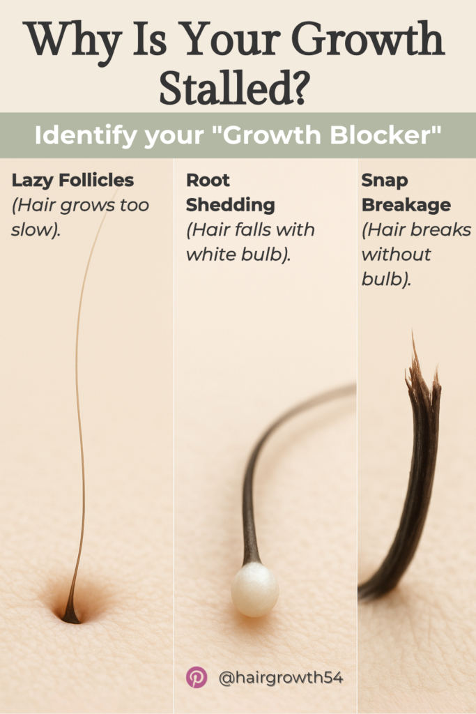 “My hair isn’t growing.” We hear this every day, but usually, it’s one of three specific problems: 1. **Slow Production:** Your follicles are dormant or undernourished (needs stimulation). 2. **Weak Anchors:** Your hair grows but falls out prematurely with the white bulb attached (needs root strengthening). 3. **Length Leakage:** Your hair grows fast but breaks at the ends (needs moisture/protein balance). You can’t fix all three with the same product. Identify your blocker first. Our “Scalp First Method” guide has a specific protocol for each of these 3 growth types. Link in bio to start the right routine. #hairgrowth #hairloss #hairbreakage #hairtest #healthyhair #hairgrowthtips #scalpcare