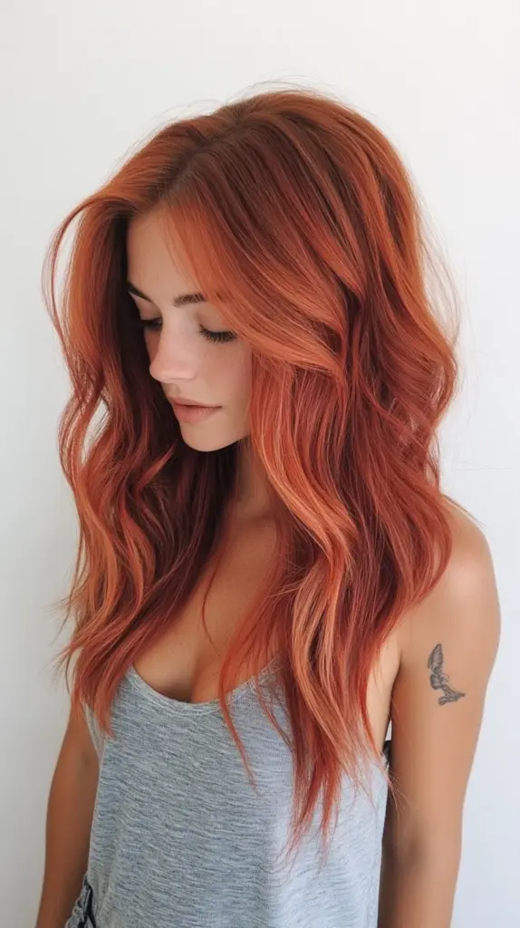 Luscious Copper Waves: Effortlessly Chic and Voluminous